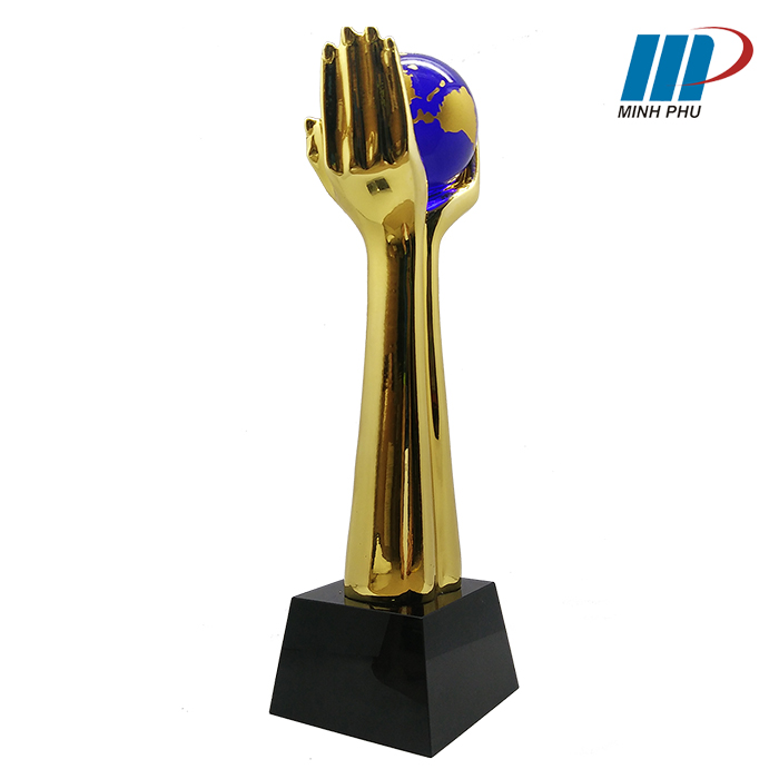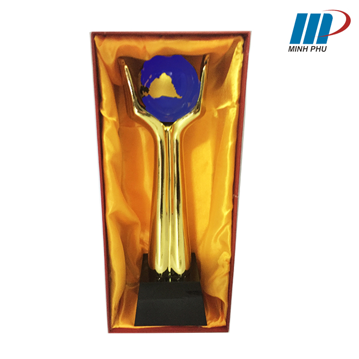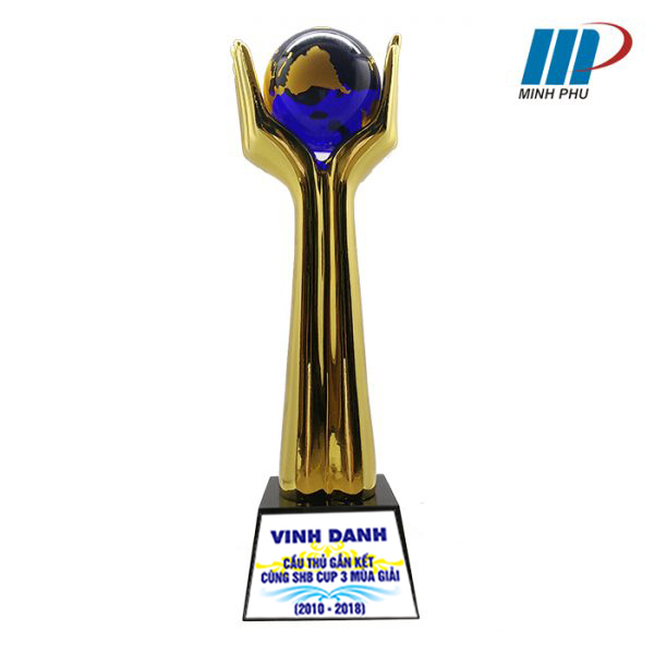 Cúp Lưu Niệm Bàn Tay được thiết kế, chế tác tinh xảo với hình dáng đôi tay nâng quả địa cầu, là dòng sản phẩm cao cấp được sử dụng để trao giải thưởng, quà lưu niệm tại nhiều giải đấu từ phong trào đến chuyên nghiệp.